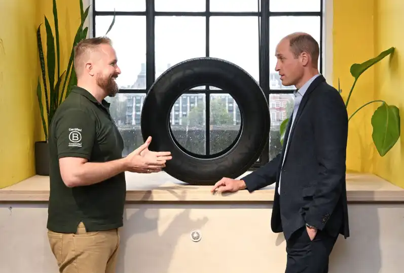 Enso was a 2023 finalist for Prince William’s Earthshot Prize but Erlendsson (pictured, on left, with the prince) has his sights set on market share as much as accolades. By December, Enso tyres will be sold in the US, the world’s second-largest automotive market. In June, Enso signed a letter of intent with the US Export-Import Bank to invest $500m (€463m) in a manufacturing facility slated to open in 2027. At full capacity, the factory could make 20 million tyres, or 8 per cent of the domestic market. No one company currently dominates the US tyre market, which makes it ripe for newcomers. “It’s not enough for us to just develop the technology,” says Erlendsson. “We need to actually put these tyres on the market at scale.”